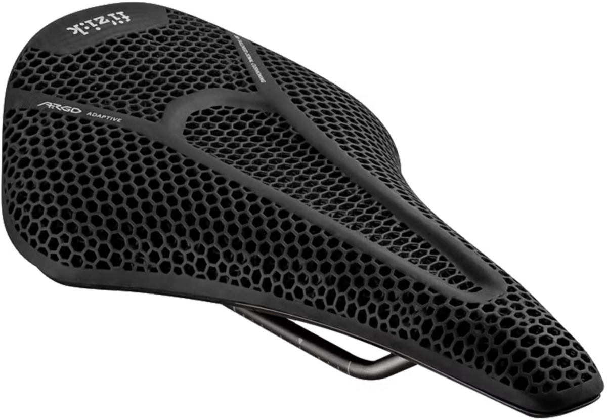 An advanced 3D-printed bike saddle with a versatile short-nosed design and lightweight carbon rail system to prioritize comfort, responsiveness and stability across a variety of body types and riding positions.