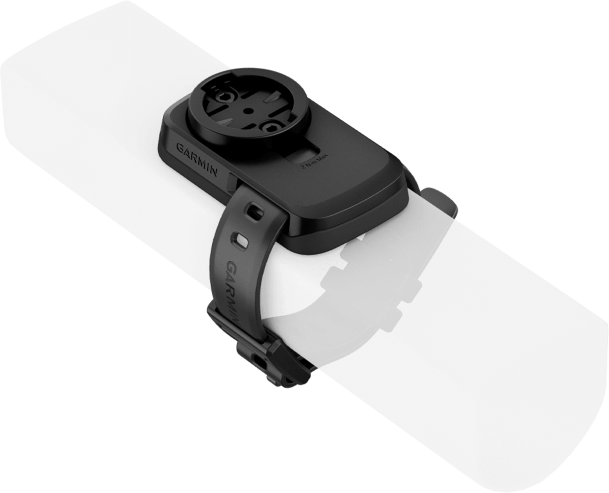 This mounting kit includes a bolt-on or silicone strap option, giving riders the flexibility to mount their Edge cycling computer to most top tubes.