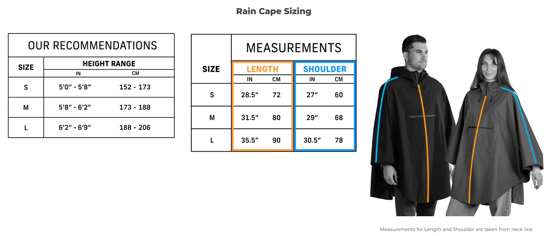 Rain Capes are designed to be unisex, loose fitting and oversized.